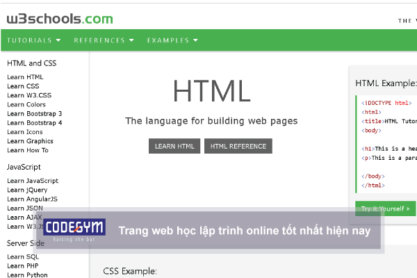 - Trang web lập trình online: W3school