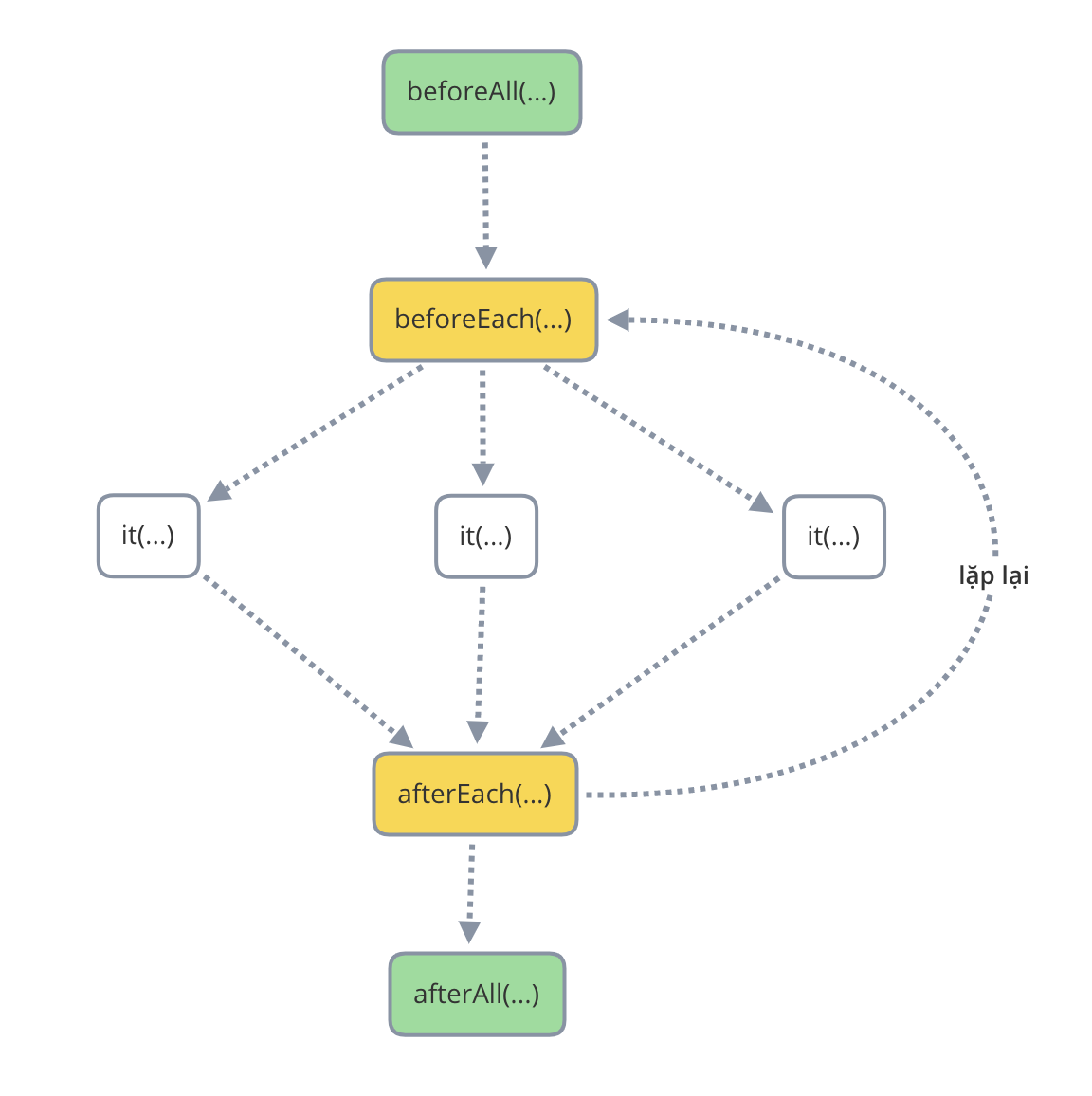 Thứ tự thực hiện của các hàm trên trong Jasmine được thể hiện như khối hình dưới đây.
