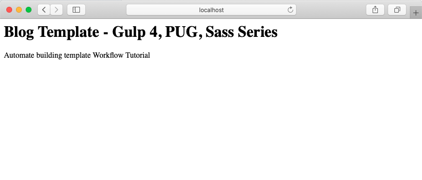Bây giờ, để thử việc code với live reload server chúng ta chạy lệnh `gulp serve`, trình duyệt sẽ mở với địa chỉ localhost:3000, thử viết các dòng sau vào file index.pug