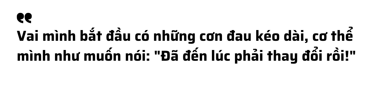 Ngày qua ngày mình vẫn tiếp tục với những công việc tay chân thuần túy, nhưng dần dần vai mình bắt đầu có những cơn đau kéo dài, cơ thể mình như muốn nói: “Đã đến lúc phải thay đổi rồi!”.