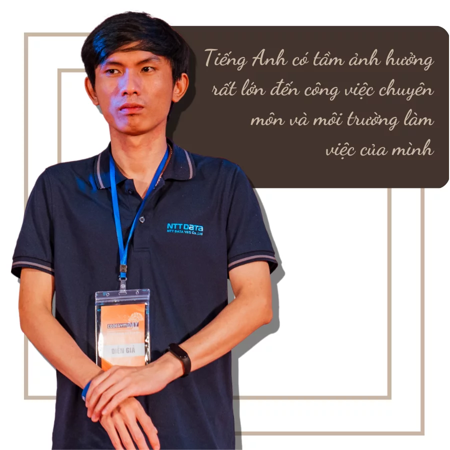 Trong công việc mình phải sử dụng tiếng Anh hàng ngày để giao tiếp với các thành viên đến từ nhiều nước khác nhau. Tuy dự án phát triển theo mô hình SCRUM và Agile nhưng mình cũng cần phải viết tài liệu, email để trao đổi giữa các bên liên quan. Hơn nữa, các kiến thức và tài liệu về chuyên ngành đều viết bằng tiếng Anh nên mình thấy ngoại ngữ có tầm quan trọng và ảnh hưởng rất lớn đến công việc chuyên môn và môi trường làm việc của mình.