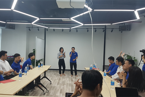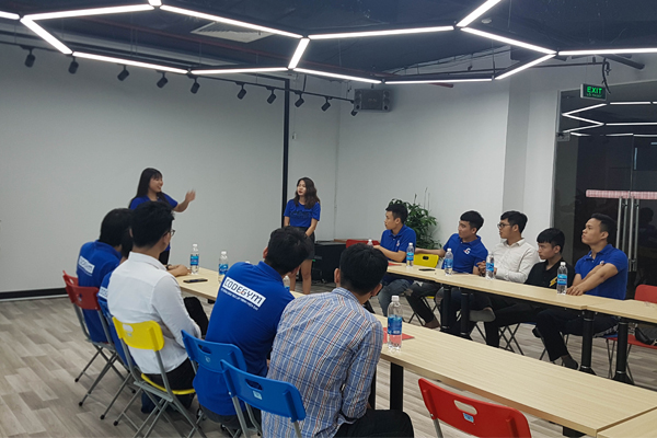 Chị Nguyễn Huyền Trang – Giáo vụ CodeGym giới thiệu các bạn học viên CodeGym với đối tác doanh nghiệp.