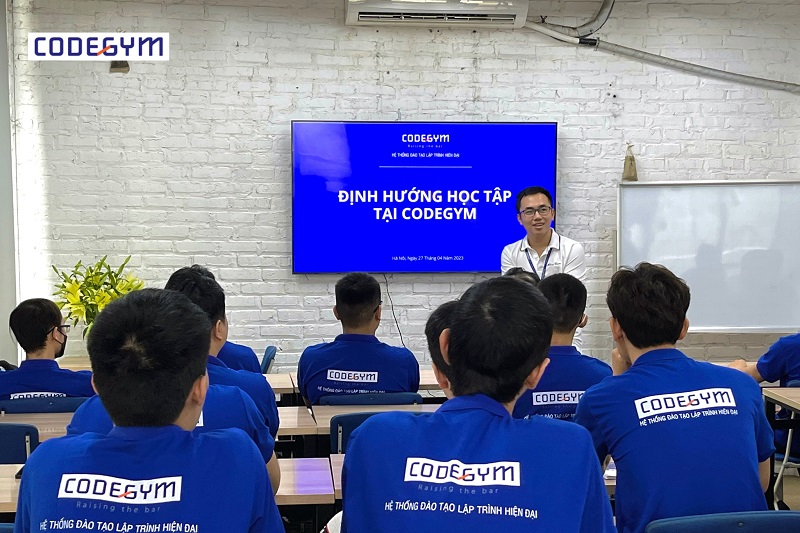 Tham dự buổi lễ khai giảng, các bạn học viên đã được anh Lê Hồng Quân – Trưởng nhóm Giảng viên Trung tâm CodeGym Hà Nội giới thiệu lộ trình và định hướng học tập cũng như cam kết việc làm sau khi tốt nghiệp.