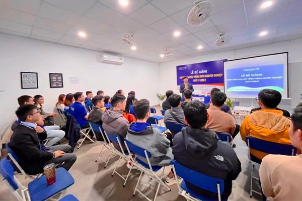 Buổi Lễ tốt nghiệp diễn ra trang trọng, thành công với sự góp mặt của ban lãnh đạo, các anh chị giảng viên cùng toàn thể 33 bạn học viên. Anh Khoa – Giám đốc trung tâm CodeGym Huế đã có đôi lời phát biểu khích lệ và chúc mừng các tân Lập trình viên đã sẵn sàng bước vào thị trường việc làm.