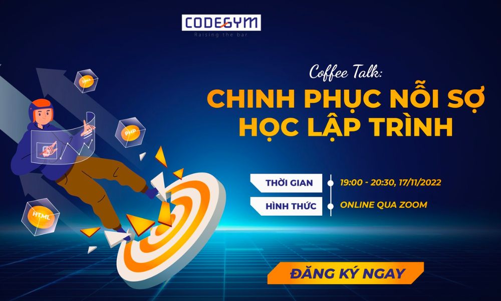 Tham gia ngay buổi Coffee Talk với chủ đề: “Chinh phục nỗi sợ học lập trình” để có những câu trả lời cho những trăn trở của bạn khi chuyển ngành học lập trình, “tháo gỡ” những vướng bận về ngành IT làm bạn lăn tăn bấy lâu.