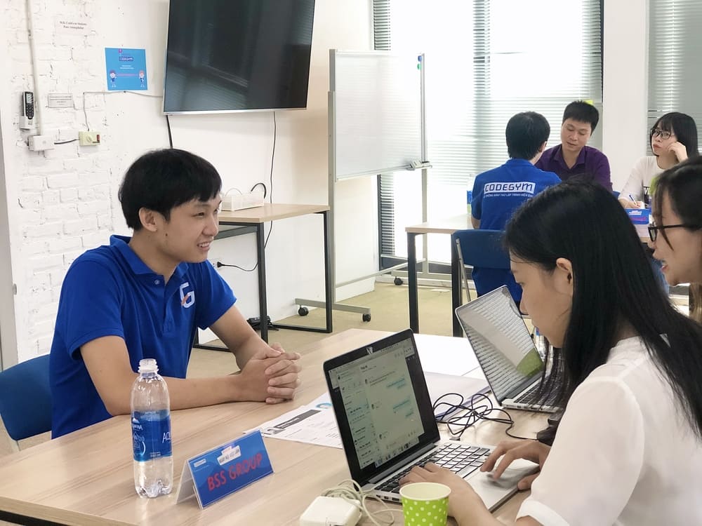 Sáng ngày 24/7/2020, tại CodeGym Mon City, buổi Hiring Day – Ngày hội việc làm được tổ chức nhằm kết nối các bạn học viên CodeGym với nhà tuyển dụng nhân lực lập trình. Tại đây có sự tham gia của các doanh nghiệp BSS Group, Revosoft, Hanbisoft cùng toàn thể các bạn học viên lớp C0220H2, lớp PHP full-time tại CodeGym.