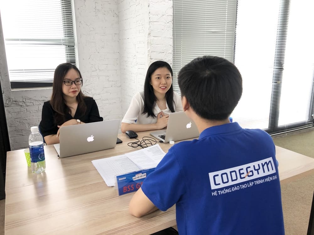 Phần chính của sự kiện là quá trình phỏng vấn của doanh nghiệp với các bạn học viên CodeGym. Nhà tuyển dụng sẽ trực tiếp phỏng vấn, trao đổi để đánh giá năng lực các ứng viên. Qua đó lựa chọn ra ứng viên có đầy đủ các yếu tố kiến thức chuyên môn, kỹ năng làm việc,có mong muốn và định hướng phù hợp với văn hóa doanh nghiệp để bổ sung nguồn lực cho công ty của mình.