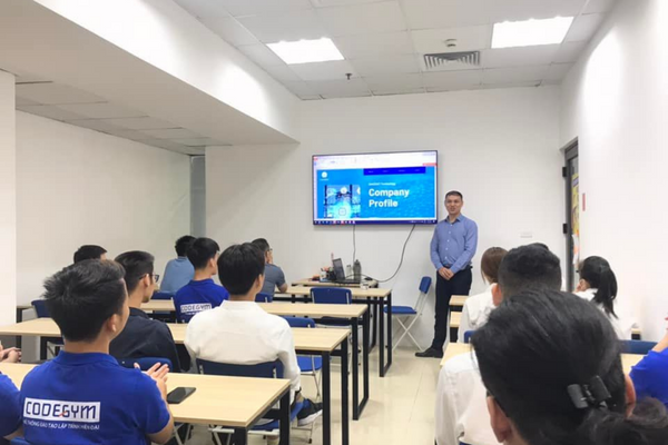 Tại phần đầu của sự kiện, đại diện CodeGym, chị Lê Thị Châu – Giám đốc Đào tạo trung tâm CodeGym Hà Nội phát đã có đôi lời chia sẻ, cùng với đó, các doanh nghiệp cũng có một vài giới thiệu về văn hóa công ty môi trường làm việc, nhu cầu tuyển dụng và bổ sung nhân lực lập trình trong thời gian tới.
