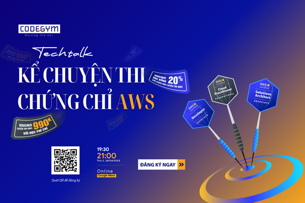 Để giúp bạn vượt qua những thách thức này, CodeGym tổ chức buổi Techtalk MIỄN PHÍ với chủ đề “Kể chuyện đi thi AWS – Sự kiện có 1-0-2 dành cho dân IT”. Sự kiện này bạn sẽ được nghe những câu chuyện vui có, “toang” cũng có từ những người đã trải qua kỳ thi AWS, cùng những bài học đắt giá giúp bạn tránh sai lầm không đáng có.
