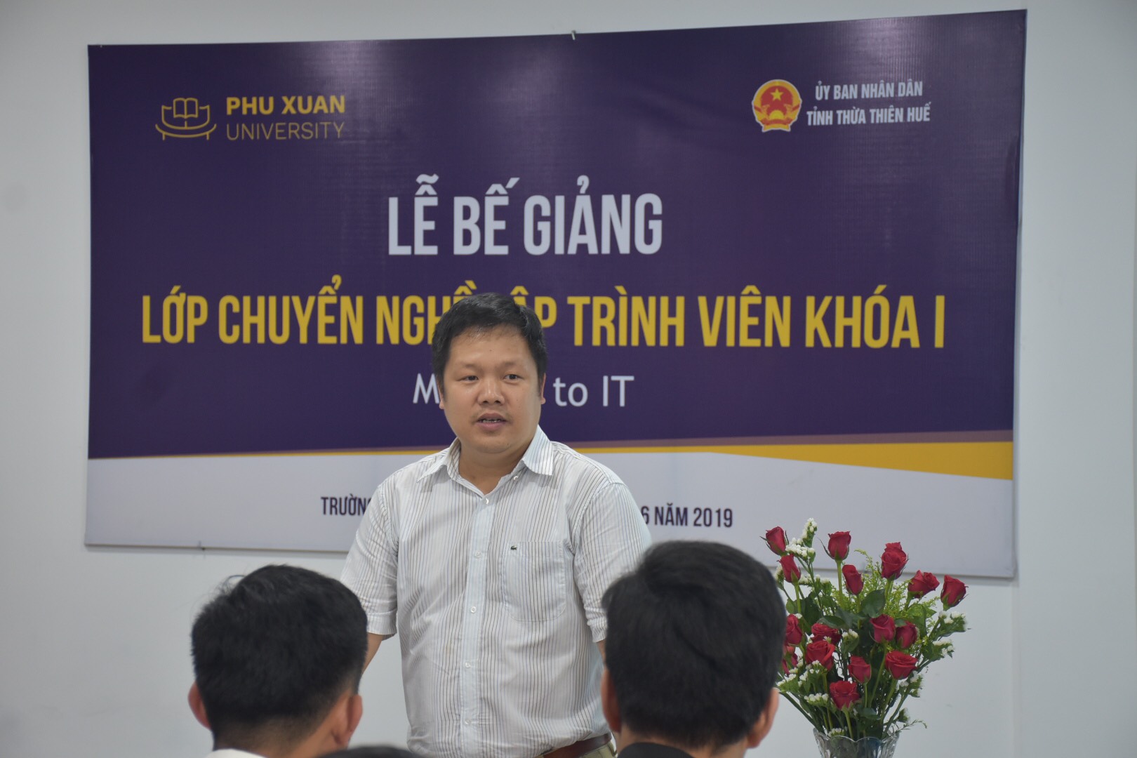 Anh Lê Tường Phúc – Giám đốc CodeGym Huế phát biểu trong buổi lễ bế giảng.