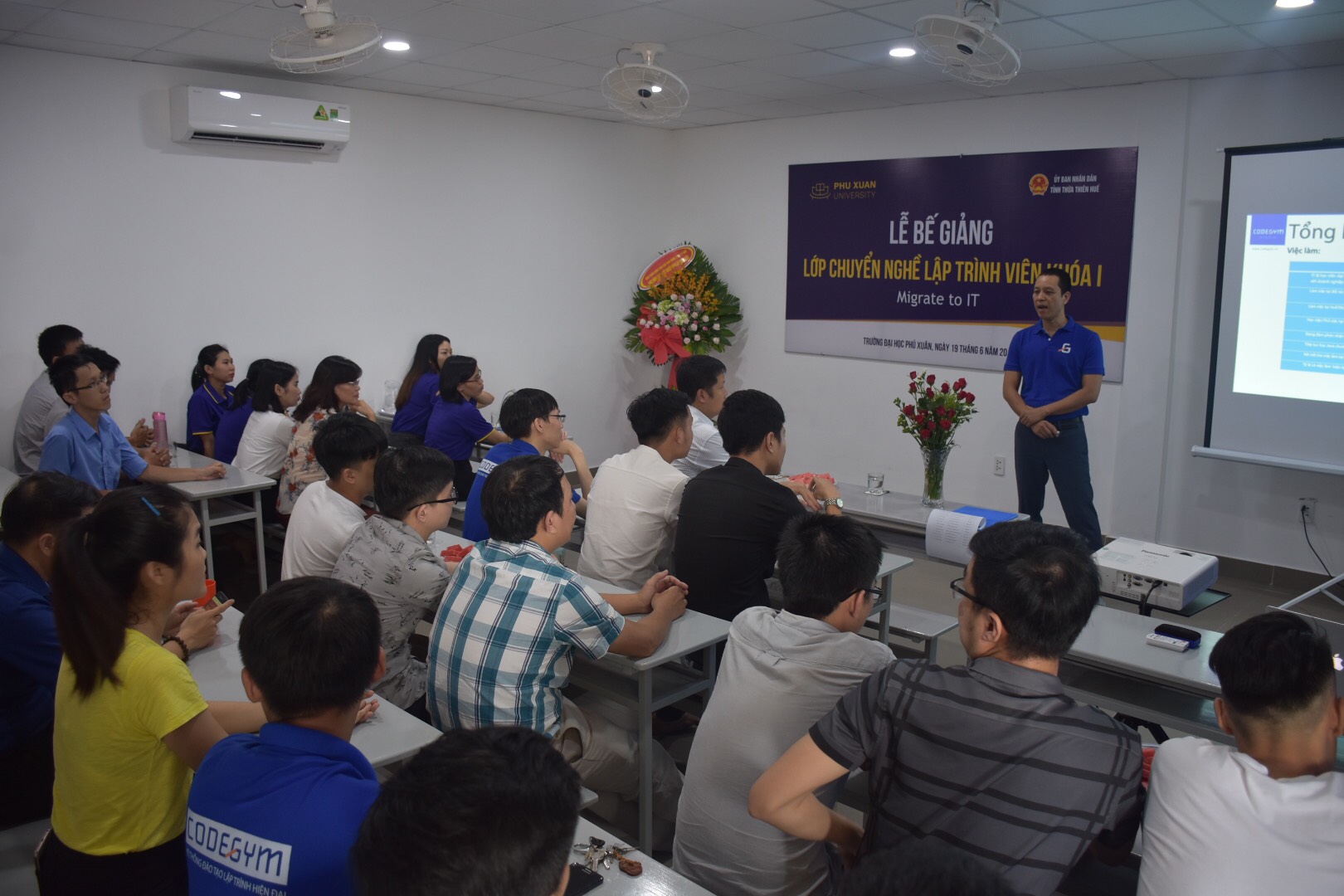 Chiều 19/6/2019, CodeGym Huế phối hợp với Trường đại học (ĐH) Phú Xuân tổ chức “Lễ bế giảng lớp chuyển nghề lập trình viên khóa I”.