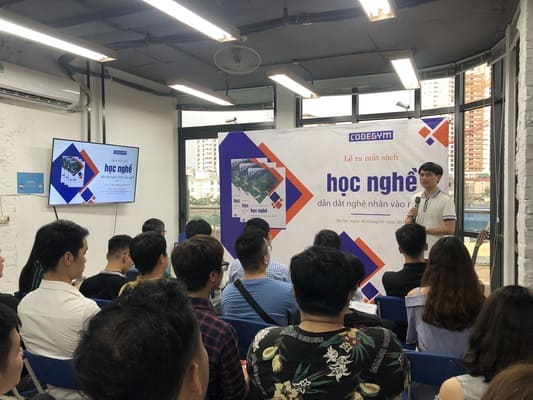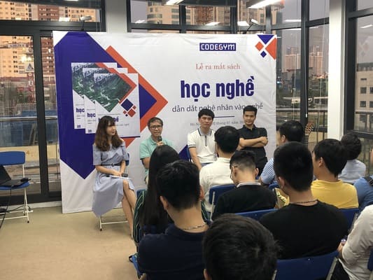 Ngày 02/07/2019, CodeGym đã tổ chức lễ ra mắt sách “Học nghề – Dẫn dắt nghệ nhân vào nghề”. Chương trình diễn ra từ 18h00′ đến 20h00′ với sự tham gia của các diễn giả, khách mời, đội ngũ biên tập sách, cựu học viên và học viên CodeGym.
