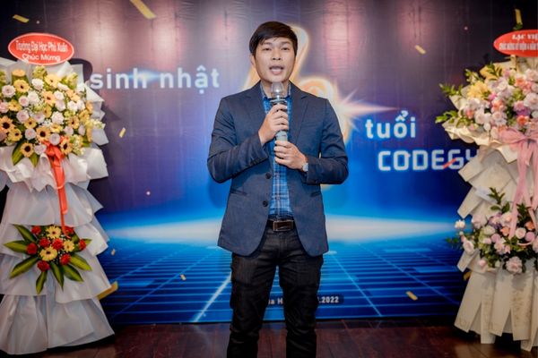 Tại buổi lễ, anh Nguyễn Hữu Anh Khoa đã có đôi lời phát biểu chúc mừng và gửi lời tri ân đến toàn thể nhân viên, học viên, cựu học viên – những người đã góp phần vun đắp nên một CodeGym Huế ngày càng thành công và vững mạnh. Đồng thời, anh cũng gửi lời cảm ơn đến các doanh nghiệp đối tác tuyển dụng đã luôn tin tưởng và ủng hộ trung tâm.