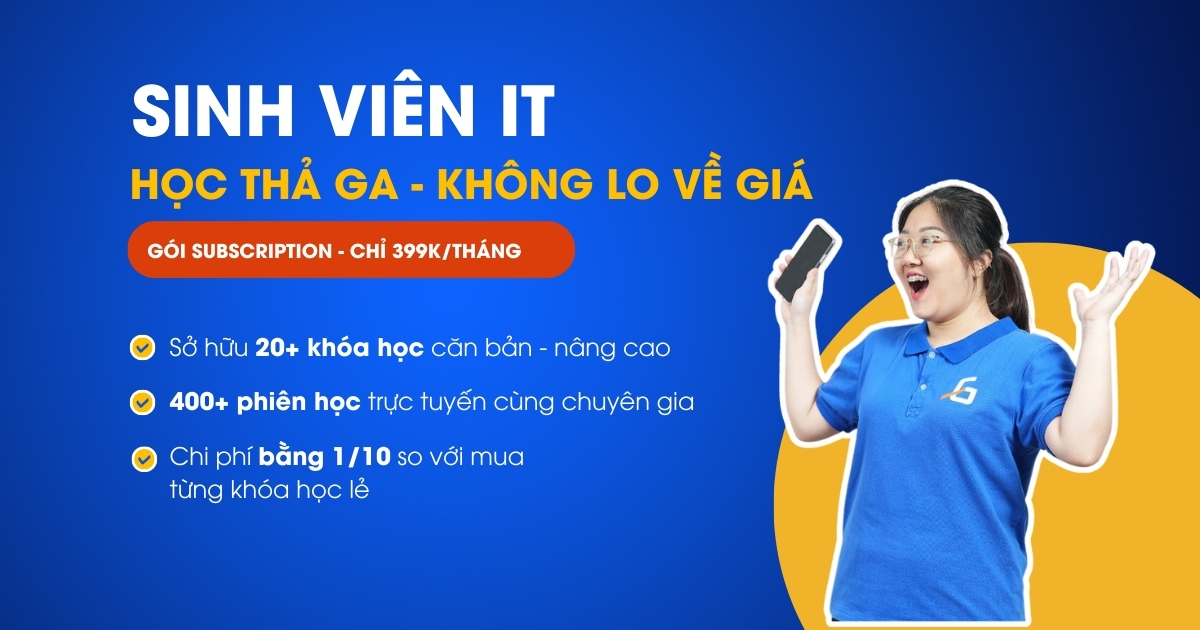 Với chương trình Subscription, sinh viên sẽ được cung cấp 20 khóa học lập trình. Từ online từ căn bản đến nâng cao, để tự học mọi lúc, mọi nơi. Tham gia 400 phiên học trực tuyến cùng giảng viên và nhiều quyền lợi khác, chỉ với 399k/tháng.