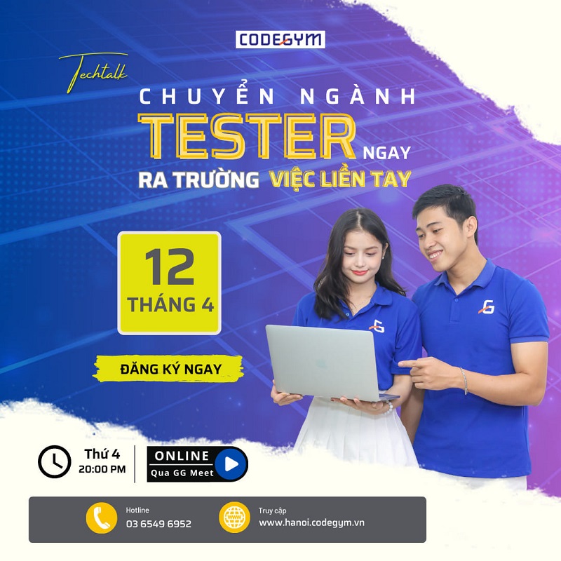 Nhằm hỗ trợ tất cả các bạn có niềm đam mê với IT mà không chuyên sâu về Code, nắm bắt cơ hội phát triển trong thời đại 4.0 và định hướng tương lai với nghề Tester, CodeGym Hà Nội tổ chức Techtalk “Chuyển ngành Tester ngay – Ra trường việc liền tay”.