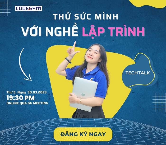 Techtalk: “Thử sức mình với nghề lập trình” được tổ chức dành riêng cho những ai mới bắt đầu học lập trình hoặc đang tìm hiểu về nghề lập trình, để giúp mọi người có cái nhìn rõ nét về ngành và trả lời cho câu hỏi: “Lập trình là gì?”, “Cần gì để trở thành lập trình viên?”,… Đồng thời khám phá tiềm năng bản thân qua bài Quizz test IQ tại CodeGym.