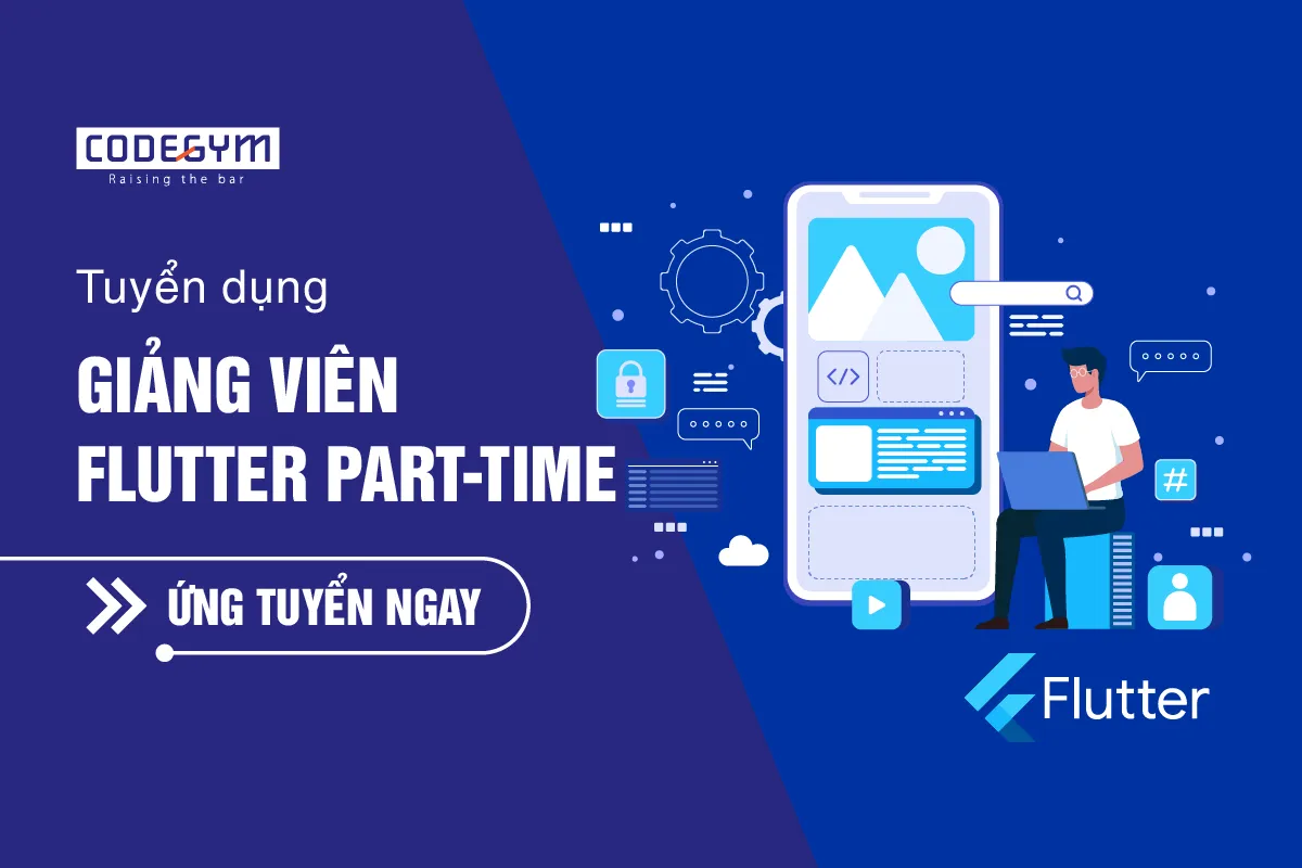 CodeGym là hệ thống đào tạo lập trình viên hiện đại hàng đầu tại Việt Nam. Chúng tôi phát triển các giải pháp học tập hiện đại và hiệu quả. Thông qua các mô hình đào tạo tiên tiến trên nền tảng công nghệ giáo dục. Qua đó, CodeGym giúp người học phát triển tay nghề vững vàng, sẵn sàng làm việc tại các công ty phát triển phần mềm. Để thực hiện sứ mệnh này, CodeGym không ngừng kiếm tìm và xây dựng đội ngũ nhân sự vững mạnh.![[CodeGym] Tuyển dụng Giảng viên Flutter Part-time](https://cdn-codegym.cdn.vccloud.vn/wp-content/uploads/2024/10/CodeGym-tuyen-dung-Giang-vien-Flutter-Part-time_11zon.webp)